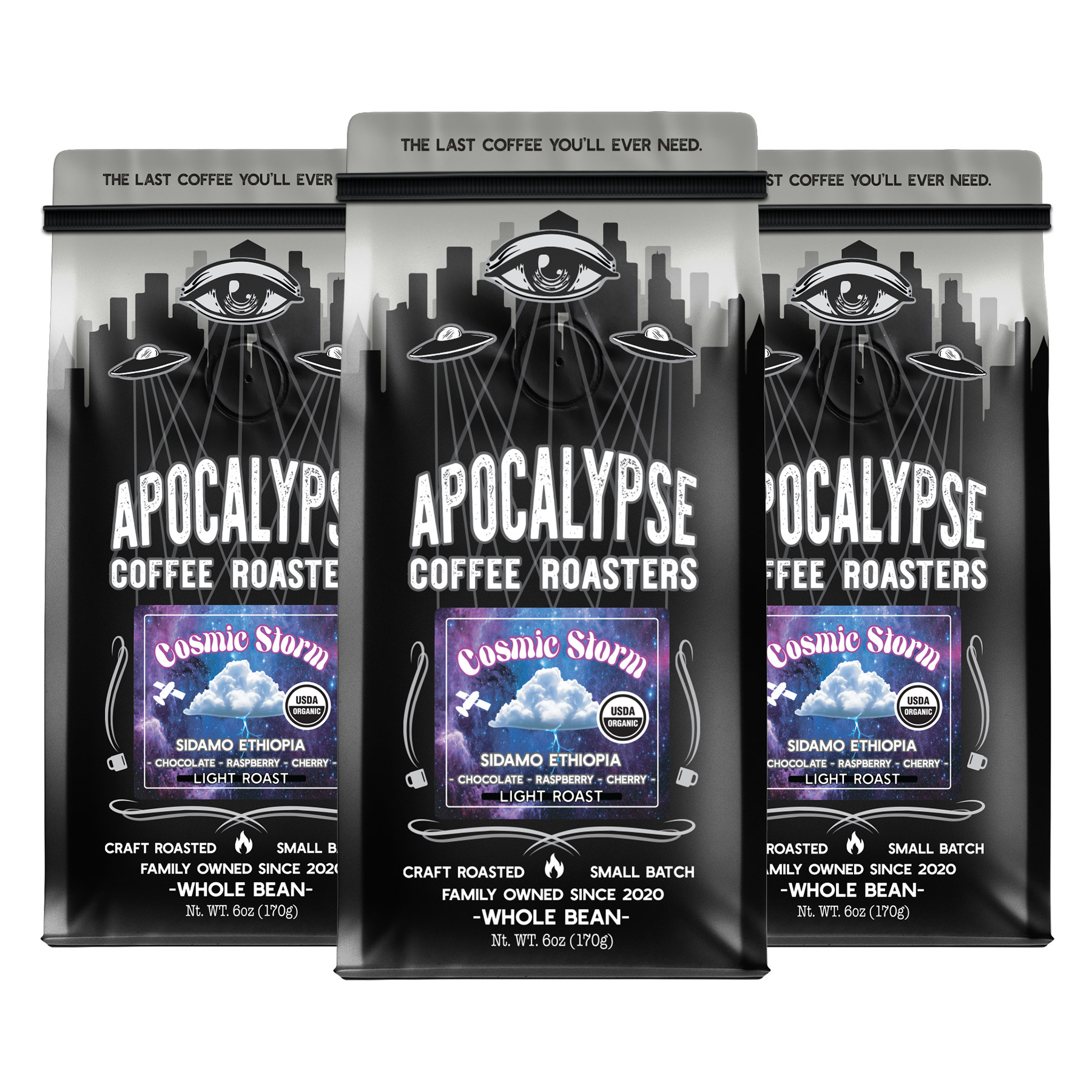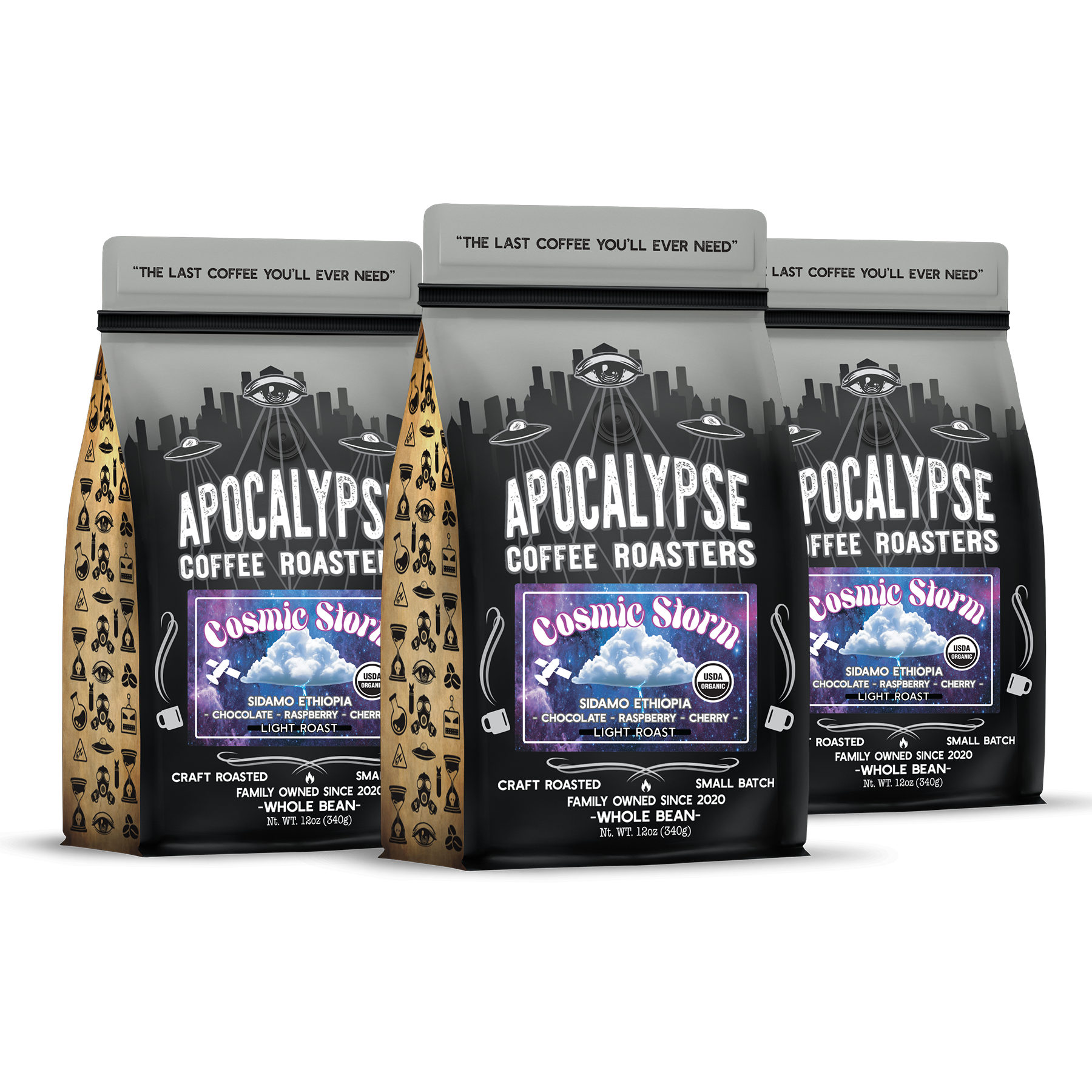 When you purchase this bundle you'll receive three(3) bags of our organic, seasonal blend Cosmic Storm Coffee.